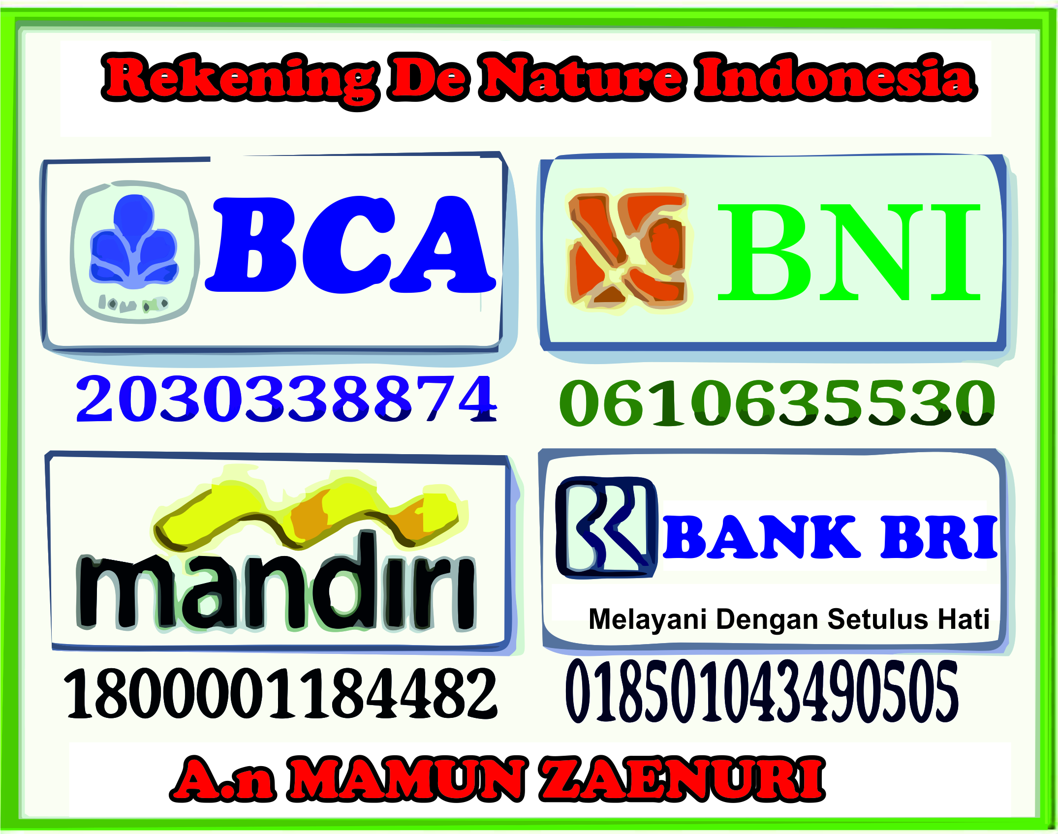 Pembayaran obat de nature melalui dapat dilakukan melalui nomor rekening berikut :