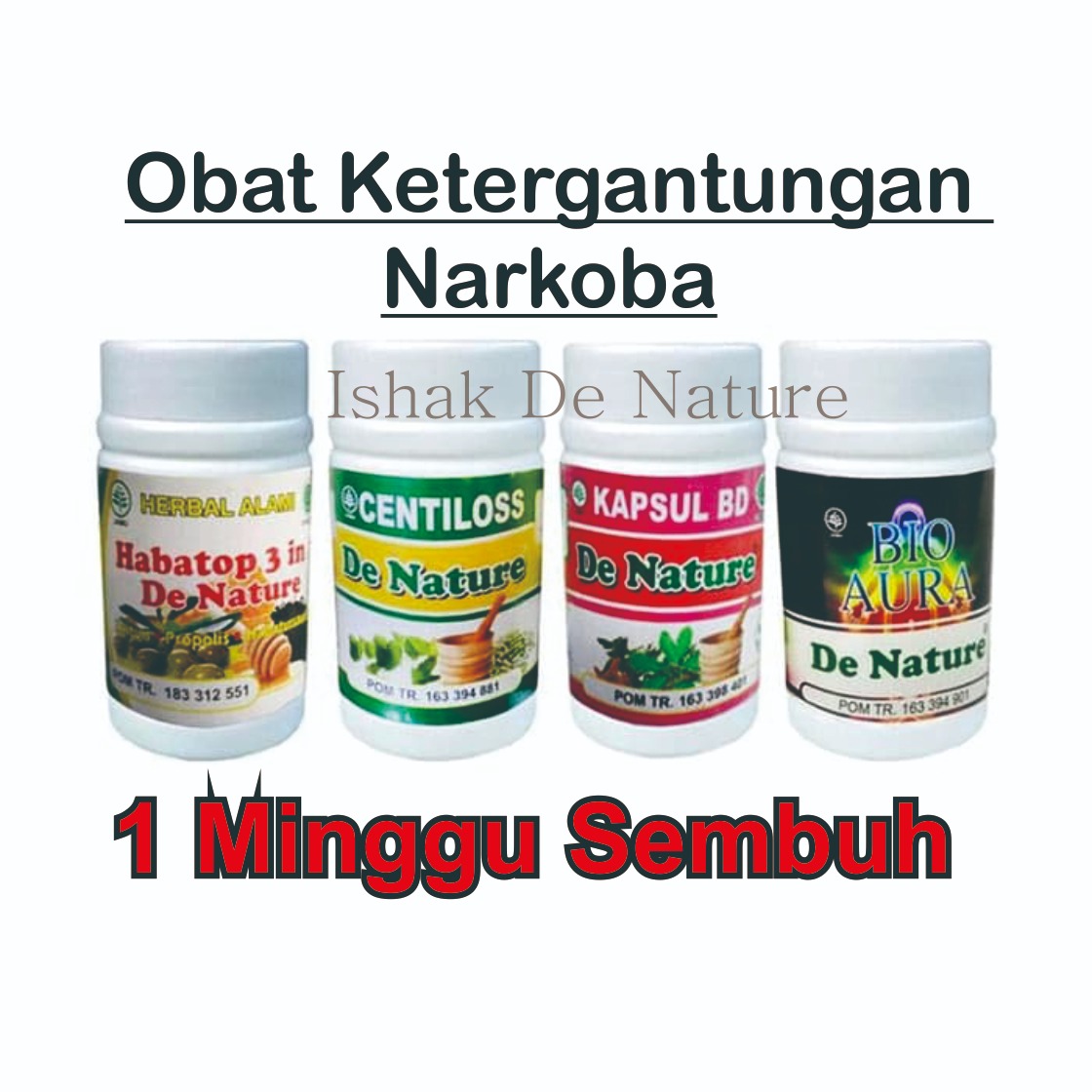 Kini De Nature Indonesia memiliki obat untuk pecandu narkoba yang berguan untuk mengurangi kecanduan narkoba, mengelurkan zat-zat yang berbahaya dari dalam tubuh dan meningkatakan daya tahan tubuh bagi si pecandu narkoba